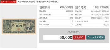 二番目以降の商品をクリックすると、その商品の事前入札画面が開きます。