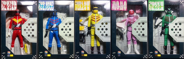さて、ゴーカイジャー劇中では地球で始めて「結成された」と知られており、現在ではスーパー戦隊シリーズの第1作目(1作目ではない時代もあったので)として皆様にもお馴染みの秘密戦隊ゴレンジャーがメディコムのRAHシリーズで「5人揃って(ここのイントネーションが大事)」久々の入荷!!