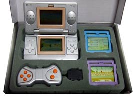 約2年前の第39回に、「カートリッジ3」という一見ショボいゲームのようで実はオリジナルのゲームをそのまま移植してあってすごいんだぁー・・というのをお伝えしました。 あれから2年。更にパワーアップしたゲームが出ていたんです。 その名も「マルチスクリーンゲーム」。 任天堂DS風の本体に、上・下2枚のパネルを付け替えて遊ぶ携帯ゲームで、今度は一体どんなゲームなんだろうと期待に胸を膨らませながらパネルをはめて電源ONっ!!! ![]() さて、次はなんだろな。電源ONっ!!! 『テテッテテテッテ・・・』 うぉーっ、ちょっと分かり難かったかもしれませんが、スパーマリオの音楽やんけー。 しかもゲームは・・ギャーッG&Wのマリオブロス。 コレは通常左右で遊ぶゲームなのに、上・下に分割されてるなんて不思議すぎる!! 画面のキャラもオリジナルに忠実でいい感じ。 ![]() こっちは上・下分割そのままだけど、下の画面に出てくるクモの数が1匹多くて難しくなってるぅー。 正直1つのゲームを除いてシビれました。 何が良いって、キャラクターの表示がオリジナルにかなり近い?(そのまんま?)なところ。 この技術が現在でも残っているなら多少高くてもしっかりしたゲームを作って欲しいと思うのは僕だけでしょうか? にしても、良い物を見つけてご機嫌な僕でした。 ![]() ![]() どうせならドンキーコング入れて欲しかったよなぁー・・。